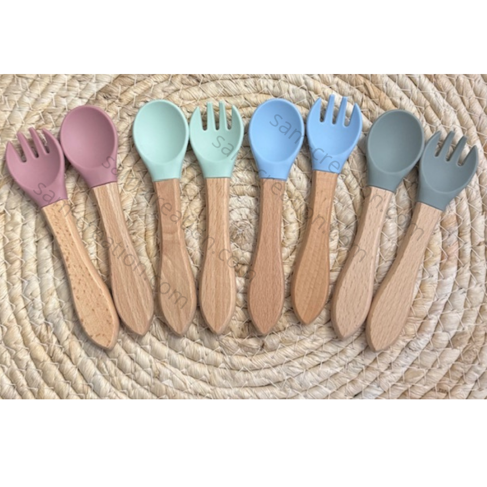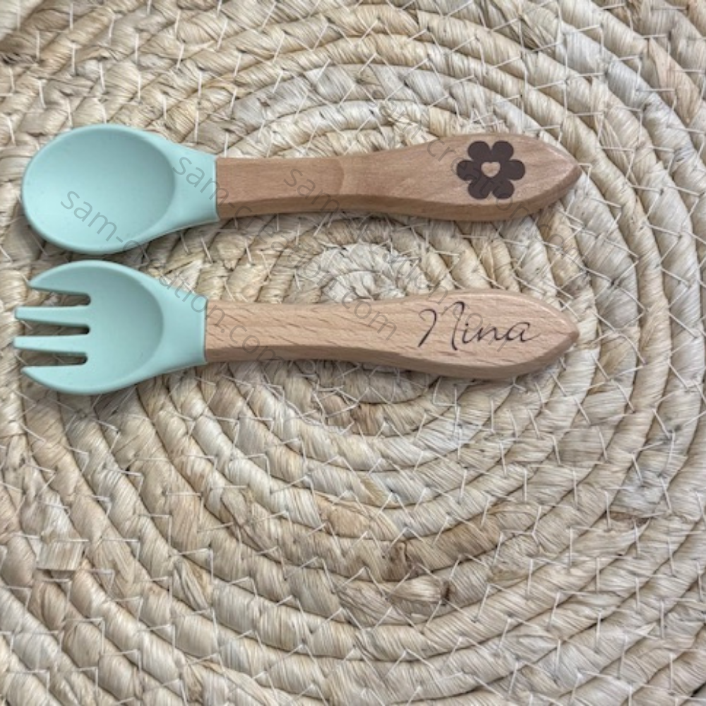 🍼 Couverts Enfant Bois & Silicone Personnalisables