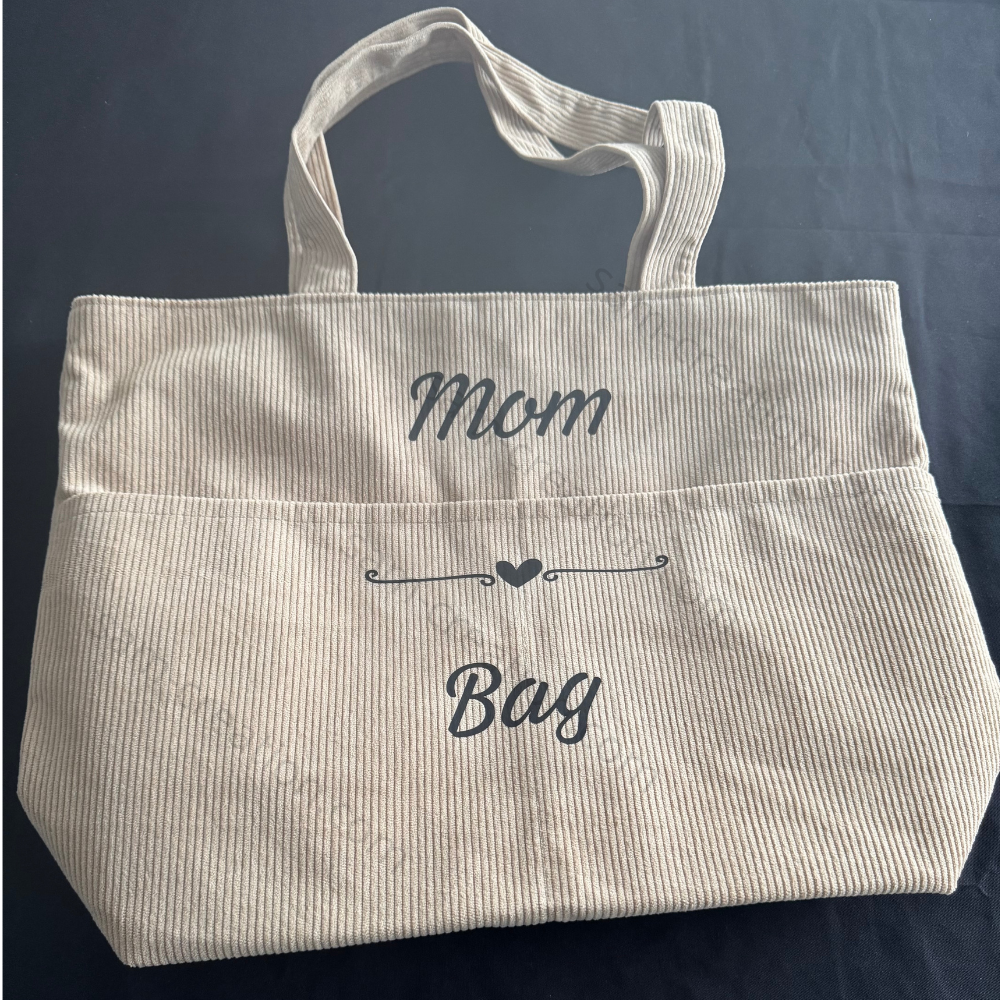 Sac en velours côtelé – 40 x 30 cm, fermeture zippée et poches avant